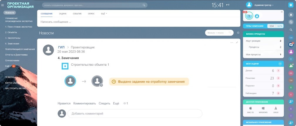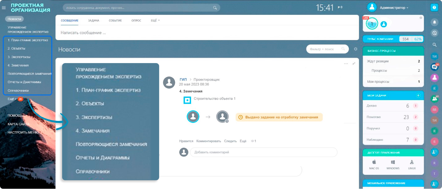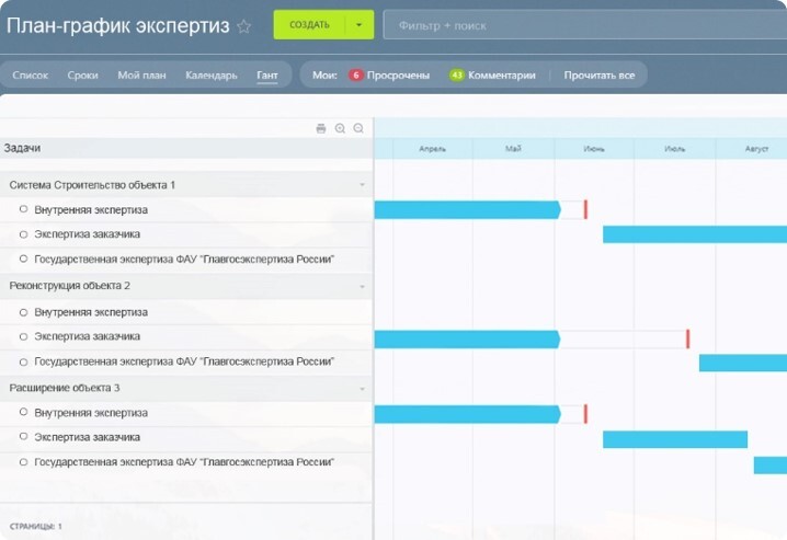Вести учет большого массива данных (по прохождению экспертизы по всем проектам и всем замечаниям) в единой системе